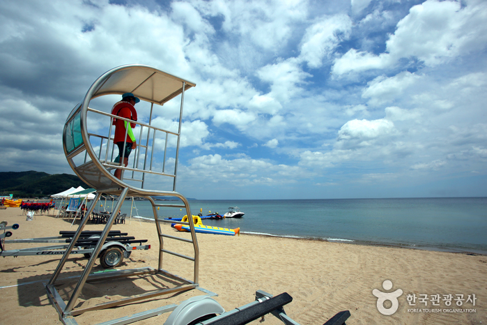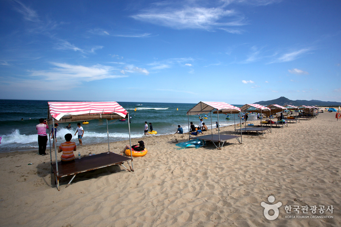 울창한 송림에 에워싸여 있으며, 금빛 모래는 굵고 몸에 붙지 않아 예로부터 여기에서 찜질을 하면 심장 및 순환기 계통 질환에 효험이 있다는 이야기가 전해져 내려온다.